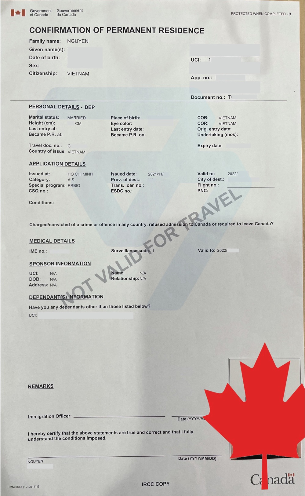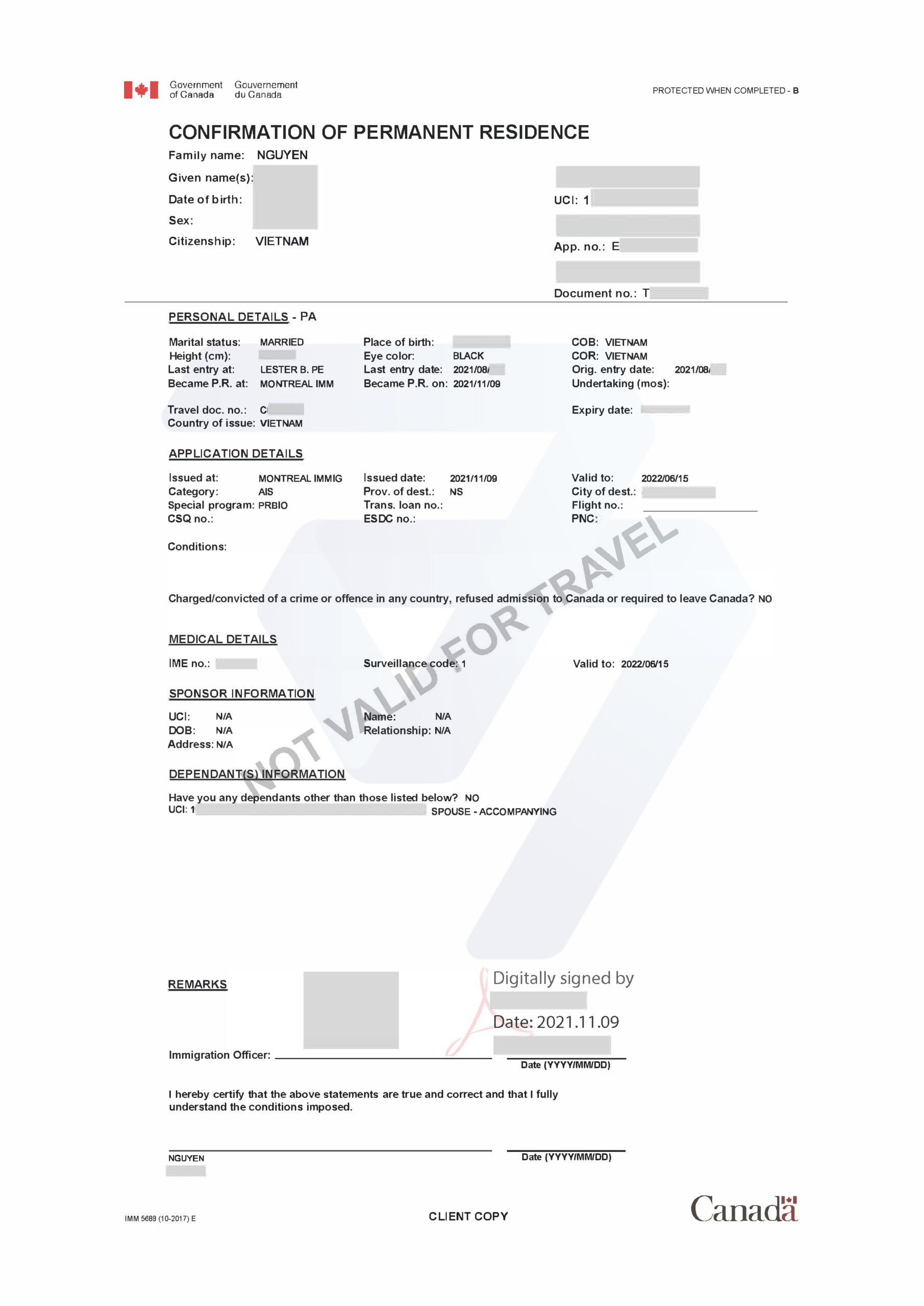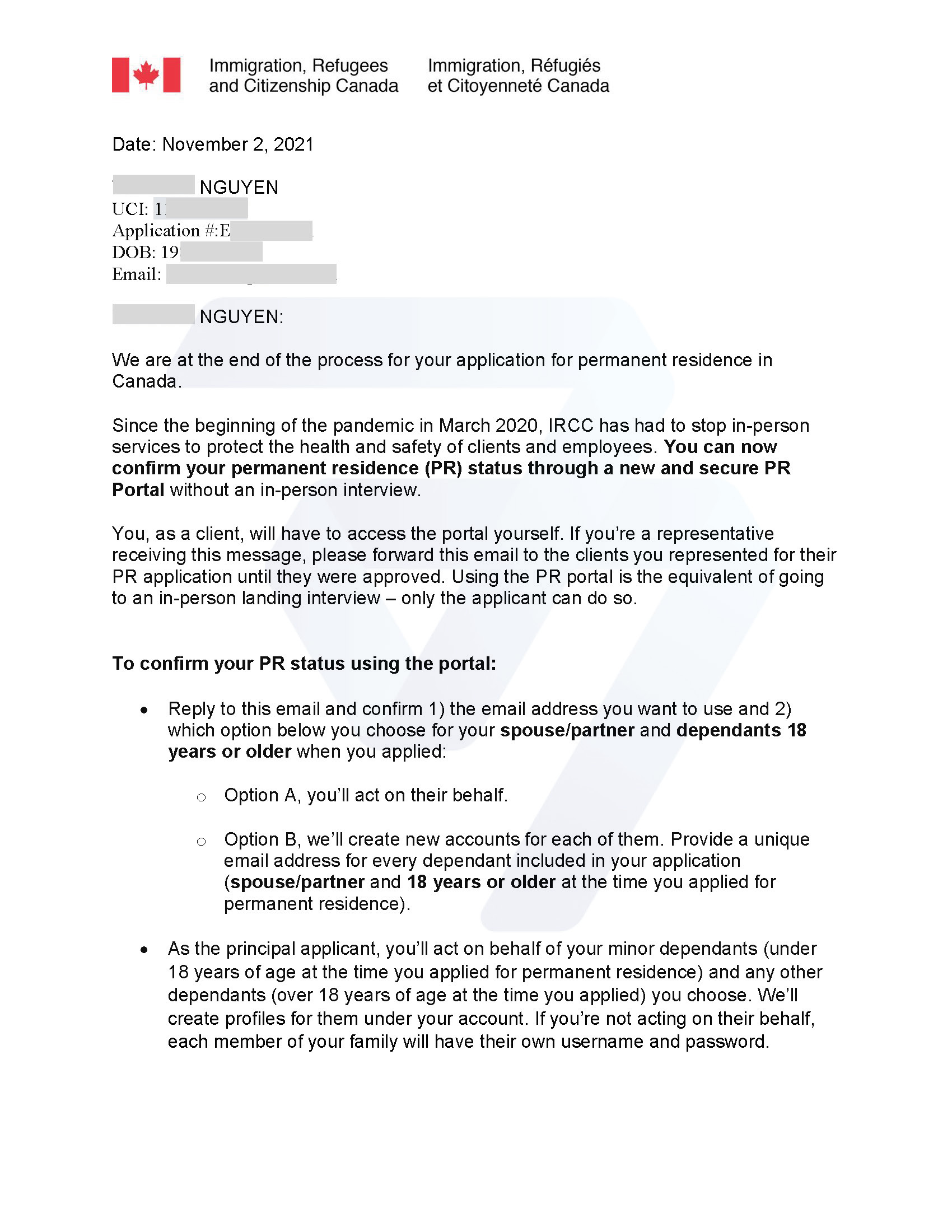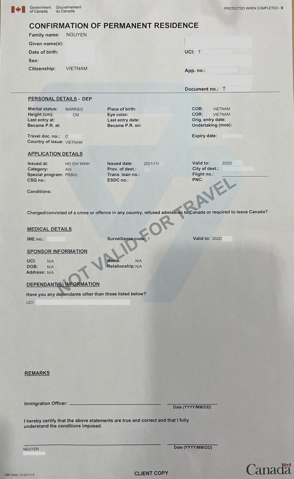 Chúc mừng anh T và cả gia đình vừa nhận được chấp thuận cấp Thường trú nhân Canada ngay sau Lễ Tạ Ơn 2021 🎉🎉